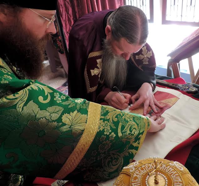 Signing the monastery's Antimins Signing the monastery's Antimins
