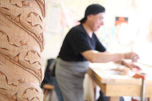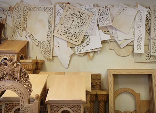 Konstantinos started by working out of a garage. Under Konstantinos' direction, the carving is done by long-time staffers, who work in the light-filled shop chiseling in time to classical music.
