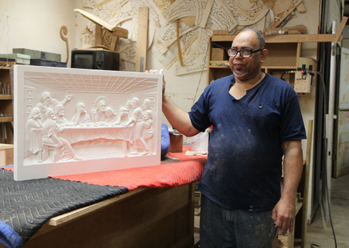 "There's nothing else like hand carving," he says, adding that in later years he concentrated on the commerce, not the art, side of the business. "We do the work with chisels. No machine can duplicate it."