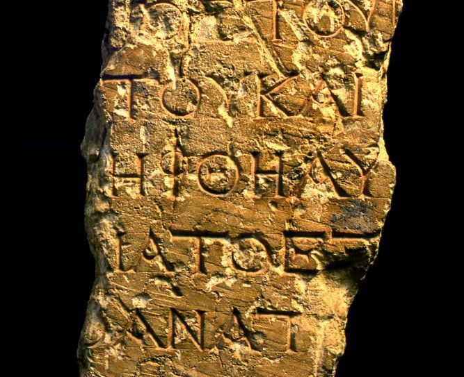 The unassuming slab of limestone doesn’t look like much. It’s crudely fractured and chipped on the sides, pockmarked with age, and is perched not too prominently on a shelf at the Israel Museum. But its smoothly hewn face and crisply etched Greek letters still bearing faint traces of red paint belie monumental significance.