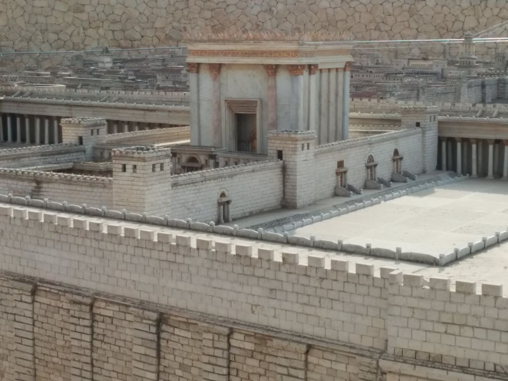 The Israel Museum’s Second Temple Model. The “soreg,” a fence partitioning the complex, can be seen to the right of the sanctum, beside the steps. (Ilan Ben Zion/Times of Israel staff) The Israel Museum’s Second Temple Model. The “soreg,” a fence partitioning the complex, can be seen to the right of the sanctum, beside the steps. (Ilan Ben Zion/Times of Israel staff)