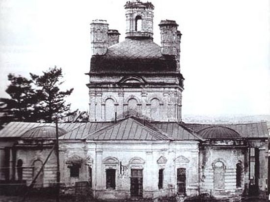 The forest and meadows appear largely undisturbed, and some of the small villages look as they must have seventy years ago. The view of the city of Kaluga, very near Kozelsk on the banks of the Oka River, looks very much like a pre-revolutionary engraving I have seen of that city, only perhaps slightly more decrepit with age. But the skyline that greeted us when we reached Kozelsk , as across a wide field the domes of Optina rose into view, proved that the communists destroyed a great deal more than they built. Missing is the great bell tower, once over three stories tall; and of the many pre-revolutionary domes, only a few now glisten. Nevertheless, the Monastery stands majestically afar off; and as we approached, a reverent hush fell involuntarily upon the car, as we mentally prepared ourselves for a visit to this holy place .