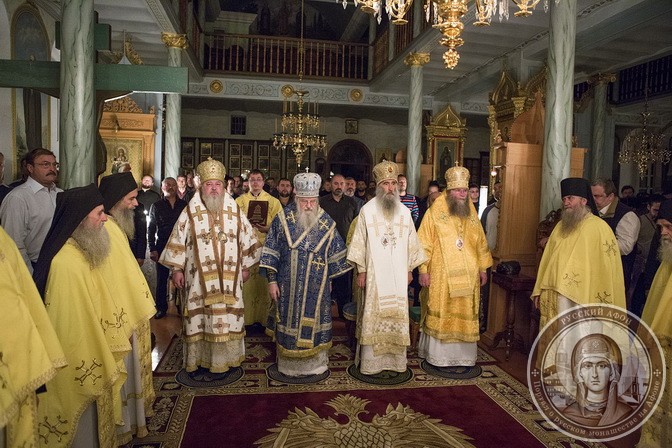 The All-Night Vigil and Divine Liturgy were celebrated on October 21 and 22 at the Church of the Intercession at the Russian Monastery of St. Panteleimon on Mount Athos by Metropolitan Yevlogy of Vladimir and Suzdal, Metropolitan Sergy of Ternopol and Kremenets, Metropolitan Kirill of Stavropol and Nevinnomyssk and Bishop Nil of Murom and Vyazniki.