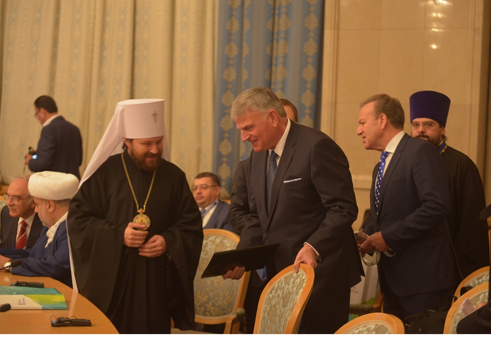 I am very grateful to His Holiness Patriarch Kirill and His Eminence Metropolitan Hilarion for their kindness in inviting me to speak to this distinguished gathering of international religious leaders on the subject of peace. I cannot help but recall that 33 years ago – in 1982 – His Holiness Patriarch Pimen extended a similar invitation to my father, the Rev. Dr. Billy Graham, to speak here at another conference on world peace sponsored by the Russian Orthodox Church. It was the height of the Cold War, and many in my own country — including some of our highest officials — strongly urged him not to come. However, my father was convinced God had called him to raise his voice against the dangers of nuclear and biochemical weapons of mass destruction. I believe that conference led eventually to a new era of peace and understanding. The issues we face today may be different, but I pray that this gathering may have a similar impact.
