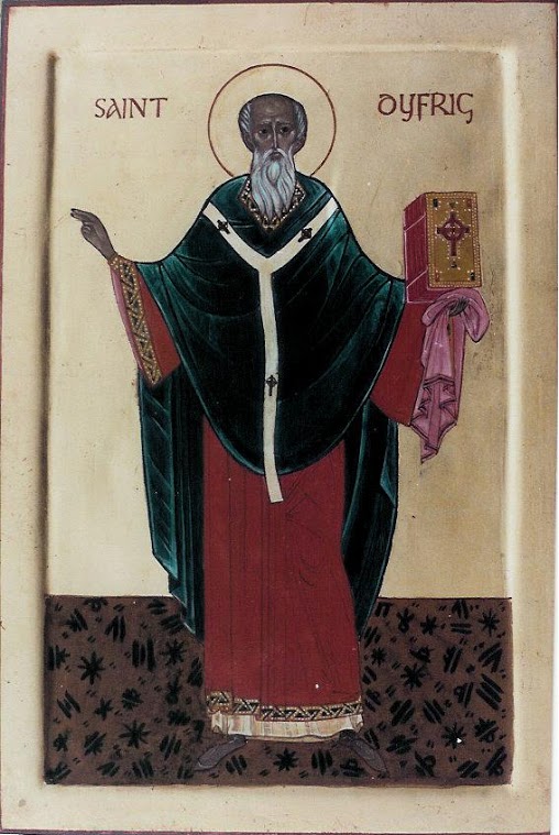 St. Dyfrig, also known by the Latin name of Dubricius, was one of the founders of Orthodox monasticism in Wales. The influence of this great saint in the late fifth and first half of the sixth centuries was significant. No fewer than 2,000 monks lived in the monasteries established by him. Unfortunately, not much authentic information on the saint survives, and his Life, written in the twelfth century by a monk called Benedict of Gloucester, is not very reliable.