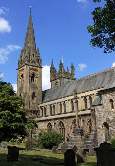 A church, rebuilt in the nineteenth century, standing in the village of Gwenddwr in the Welsh county of Powys, is also dedicated to St. Dubricius. The village’s name means “white water”. Supposedly St. Dyfrig founded a monastery here; later there was a seminary on the same site that bore his name. The early English church (rebuilt in the thirteenth century) in the village of Porlock, situated in the coastal area of Somerset (England) in a very idyllic setting, is dedicated to our saint. It is still visited by numerous pilgrims and tourists. The church’s high steeple dominates the area for miles. The existence of such churches demonstrates that the mission of Dyfrig and his disciples spread to the south and south-west. Porlock was closely associated with such English “romantic” poets, as Samuel Taylor Coleridge (1772-1834) and William Wordsworth (1770-1850). The fourteenth-century parish church in the village of Llanvaches within the borders of the city of Newport in Wales is also dedicated to St. Dubricius. Finally, another Anglican (Church of Wales) church in the Welsh capital of Cardiff (in Grangetown) is dedicated to Sts. Dyfrig and Samson—saints who knew each other well. The Roman Catholic church in the village of Treforest, Pontyprid, in the Rhondda Cynon Taff area, is dedicated to St. Dyfrig.