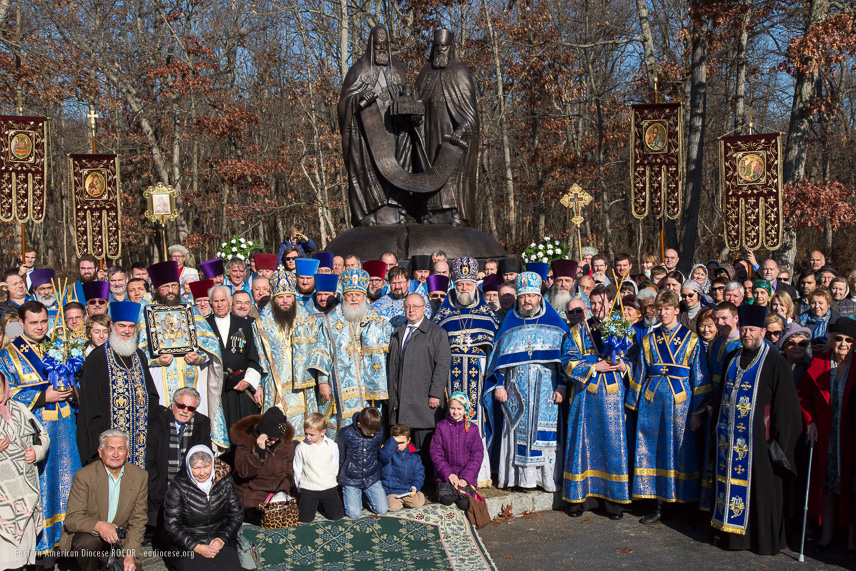 On Friday, December 4, the great feast of the Entrance into the Temple of the Most Holy Theotokos, a multitude of clergy, faithful, and guests from the U.S. and Russia gathered at St. Alexander Nevsky Diocesan Cathedral in Howell, NJ. Prior to entering the church, many inspected the monument to two of our most distinguished contemporaries: His Holiness, Patriarch Alexey II, and His Eminence, Metropolitan Laurus, which was installed opposite the cathedral. On this bright, sunny day, the feast at the Eastern American Diocesan Center was twofold.