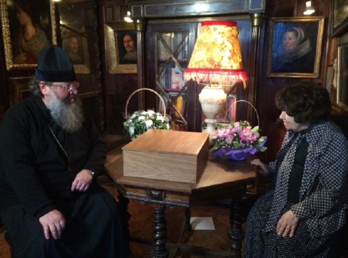 On December 11 2015, Metropolitan Kirill of Ekaterinburg and Verkhoturye met with Nina Mikhailovna Molev at her apartment in Moscow. She presented Metropolitan Kirill with a wooden box containing the personal items belonging to Grand Duchess Elizabeth Feodorovna, to be donated to the Museum of the Holy Royal Martyrs in Ekaterinburg. On December 11 2015, Metropolitan Kirill of Ekaterinburg and Verkhoturye met with Nina Mikhailovna Molev at her apartment in Moscow. She presented Metropolitan Kirill with a wooden box containing the personal items belonging to Grand Duchess Elizabeth Feodorovna, to be donated to the Museum of the Holy Royal Martyrs in Ekaterinburg.