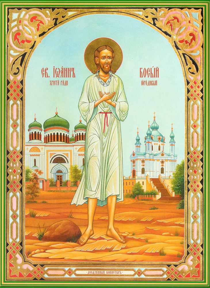 Righteous John the Barefooted passed to the Lord in 1849, aged 50, and was buried in Schekavitskoe cemetery in Kiev.