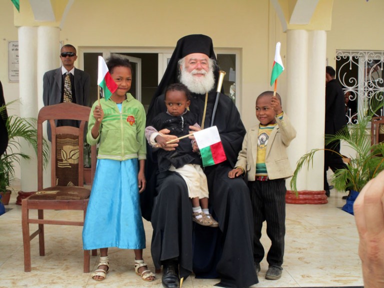 Patriarch Theodore of Alexandria visited the Orthodox Mission of Madagascar on May 29, 2015. During his week-long tour the Patriach traveled thousands of miles and blessed many new foundations of the mission, i.e. two churches, a large boys’ orphanage, an agricultural university, a high school and a clinic.