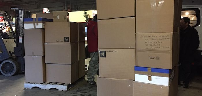Shipping logistics were handled at a discount, thanks to donations of boxes by a local UPS store and Midwest Packaging Solutions and lowered costs by Chicago-based shipping company Kronos International.