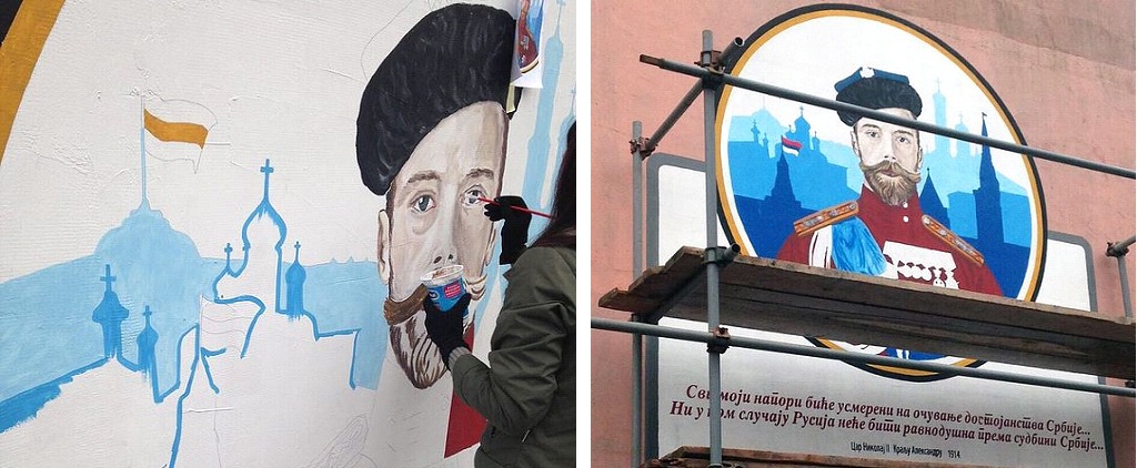 One manifestation of Serbia’s love and memory was the action of a group of young Serbian artists from the city of Novi Sad. For three days, from 1 to 4 February, a group of enthusiasts produced a large portrait of Emperor Nicholas II in the “popular wall painting style” in the Serbian city. The portrait reflects an original of the emperor painted in 1915 by the famous Russian painter Boris Mikhaylovich Kustodiev (1878-1927).