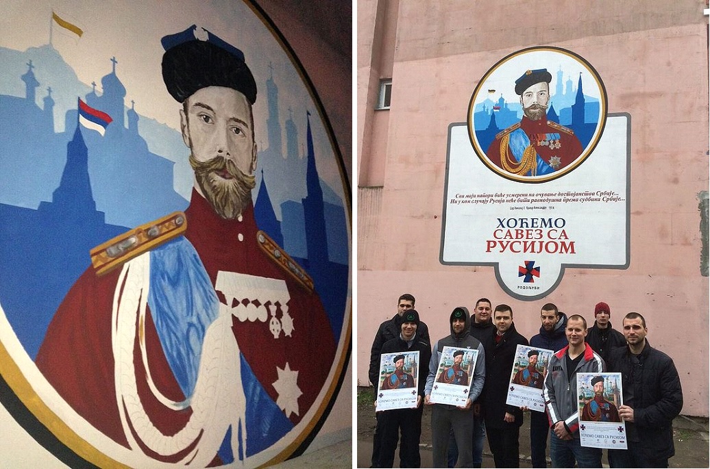 The street portrait was initiated by the Serbian League Coalition "Rodoljub" as a symbol of brotherly love and union between the Serbian and Russian peoples.