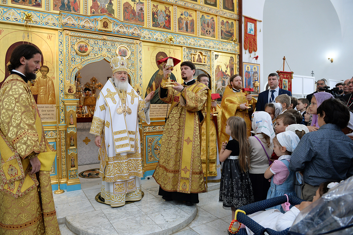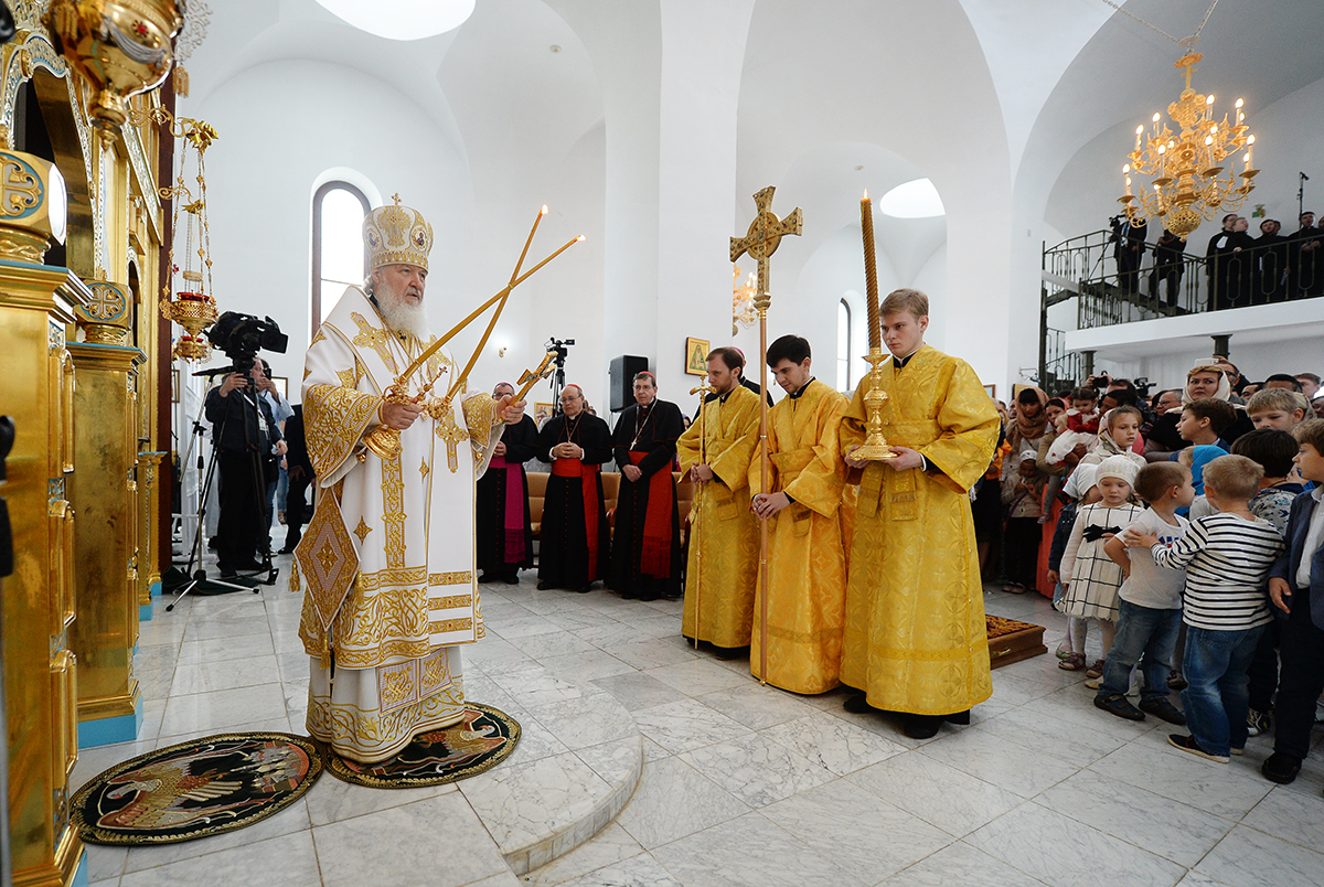 During the service, the Gospel, the Creed, and the Lord’s Prayer were read out in the Church Slavonic and Spanish languages. The Gospel reading was followed by a homily delivered by His Holiness Patriarch Kirill.