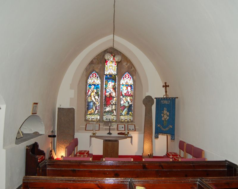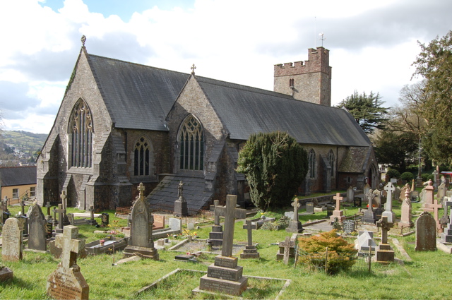 It is known that formerly over twenty places in Wales bore the name that means “church of Teilo”—this is indicative of the veneration of the saint throughout the country. In all no fewer than forty-five toponyms in Britain and Brittany comprise the name of St. Teilo. The saint is depicted on stained glass windows of a number of churches of Wales, for example, at the Holy Trinity Church in Abergavenny. A thirteenth-century church in the village of Llantilio-Crossenny in Monmouthshire, not far from Abergavenny, is dedicated to St. Teilo. The church has a very high spire and due to its large size it is often nicknamed a “baby cathedral”. The church is in the early English and Decorated Gothic styles. It is cruciform and its interior has many interesting features. In this spot a battle between a king of Gwent and pagan Saxons may have taken place in the sixth century. According to legend, St. Teilo took a cross, stood on the hillock on which the church was to be built and began to pray. And under the effect of his prayer the Saxons scattered. The church in the village of Llandeloy in Pembrokeshire is dedicated to our saint. This fine twelfth-century church was rebuilt early in the twentieth century but now is redundant. There is a holy well hidden among the vegetation near this church. A thirteenth-century church with three chantry chapels in the small hamlet of Llantilio Pertholey in Monmouthshire again has a dedication to St. Teilo who is depicted there in stained glass. Another twelfth-century St. Teilo’s Church in the spot known as Llandeilo Tal-y-Bont near Swansea was closed in the 1970s, then dismantled and has now been rebuilt at St. Fagans National History Open-Air Museum in the city of Cardiff (located in the grounds of the castle, this museum comprises over forty reconstructed historic buildings). Remarkably, during its dismantlement well-preserved ancient murals were discovered on the church walls under the wall-plaster. The village of Bishopston, called in Welsh Llandeilo Ferwallt, situated in the Gower Peninsula, has a church dedicated to St. Teilo. The parish church in the village of Merthyr Mawr near the town of Bridgend is dedicated to St. Teilo. It was built in 1850s on the site of a very ancient church. A modern Roman Catholic church in the town of Tenby in Pembrokeshire is dedicated to the Holy Cross and St. Teilo.