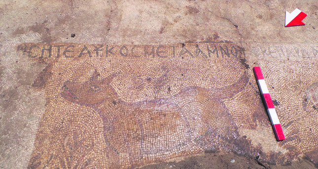 A new mosaic inscribed with quotes from the Bible has been discovered in the southern city of Adana during excavations jointly undertaken by the Culture and Tourism Ministry's Cultural Heritage Department and the Provincial Directorate of Museums. The 120-square-meter mosaic was found on private property located in the Karlık neighborhood of Adana's Sarıçam district. According to archaeologists, the Eastern Roman-era mosaic dates back to between the fifth and sixth centuries A.D. It features 16 different animal figures, including a snake, lion, sheep, leopard, wolf, goat and bull. Wild and domestic animals are portrayed as sleeping and being fed together or eating each other's food.