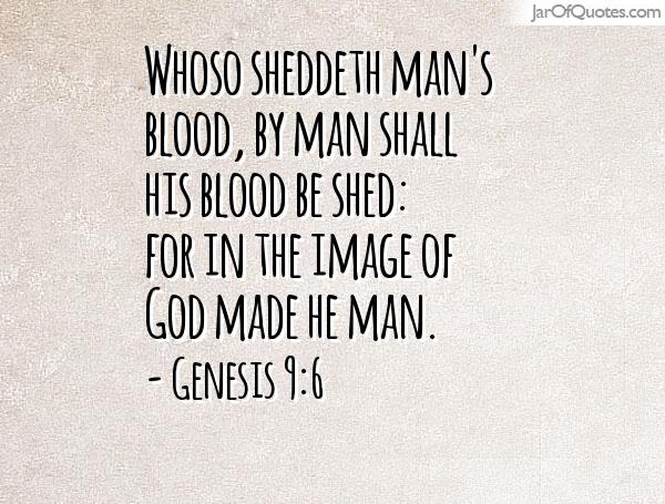 Whoso sheddeth man’s blood, by man shall his blood be shed: for in the image of God made he man.