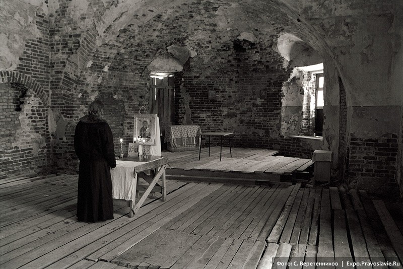 The Domostroi tells us that our brethren then were expected to spend many hours each day in prayer. Following is a series of quotes from the Domostroi: "Every day in the evening, any man who can read should sing vespers, compline, and the midnight office with his wife, children, and servants—quietly, attentively, with gentle bearing, with prayer and bows, carefully and in unison. After the service do not eat or drink at all. These instructions apply to everyone." "In the morning after rising, pray to God. Sing matins and the hours. On Sundays and holidays hold service, praying silently and with gentle demeanor. Sing in unison. Listen attentively. Burn incense before the saints. If no one knows how to sing the services, it is enough just to pray every evening and morning." "Men should not fail to attend church services every day—vespers ... " etc. "In church stand during every service. Pray with trepidation and silently. At home sing compline, midnight office, and the hours. Anyone who adds more services for the sake of his salvation—as long as it is done freely—will receive a greater reward from God." "Do not leave the church before the end of the service; always arrive in time for the beginning." "Every Cristian should always have his prayer rope in his hands, and the Jesus prayer perpetually on his lips. In the church, at home, the marketplace, walking, standing, or sitting, anywhere, as said the Prophet David, in every place of His dominion, Bless the Lord, O my soul” (Psalm 102:20). So in the sixteenth century Christians were expected to be in church for the whole cycle of services and still read other services at home for those I who could not attend and the rest of the time to pray on the prayer rope. Each Christian was encouraged to pray without ceasing, to fulfill the admonition of the Holy Apostle Paul. So here in the middle of the sixteenth century the goal was still clearly total commitment to the prayer and worship of the Church.