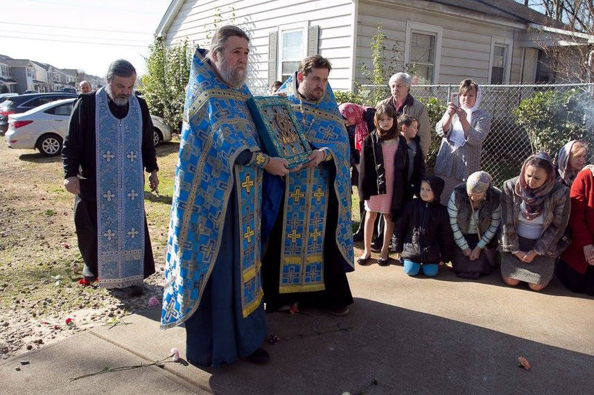 On her first stop, February 16, the Kursk Root Icon visited Holy Resurrection OCA Mission in North Augusta, SC. She was greeted by the mission’s rector, Priest Alexis Baldwin, and the holy icon was brought into the chapel where Fr. Alexis served a moleben and akathist to the Most Holy Theotokos. Over 25 people attended – which is a large number for this small mission – and, at the end of the service, Fr. Mark delivered a sermon, in which he conveyed the history of the holy Icon and its importance to Orthodox Christians.