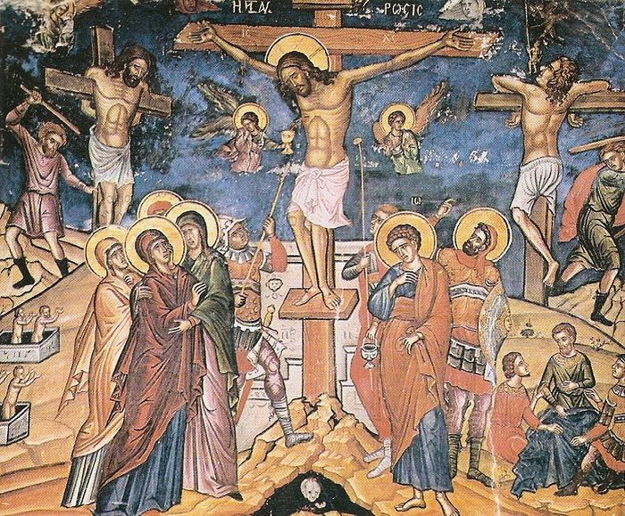 On this day, Holy and Great Friday, we celebrate the awesome, holy, and saving Passion of our Lord and God and Savior Jesus Christ: the spitting, the blows, the buffeting, the mockery, the reviling, the purple robe, the reed, the sponge, the vinegar, the nails, the spear, and above all, the Cross and Death which He condescended to endure willingly for our sakes. Also the saving confession on the cross of the grateful Robber who was crucified with Him.