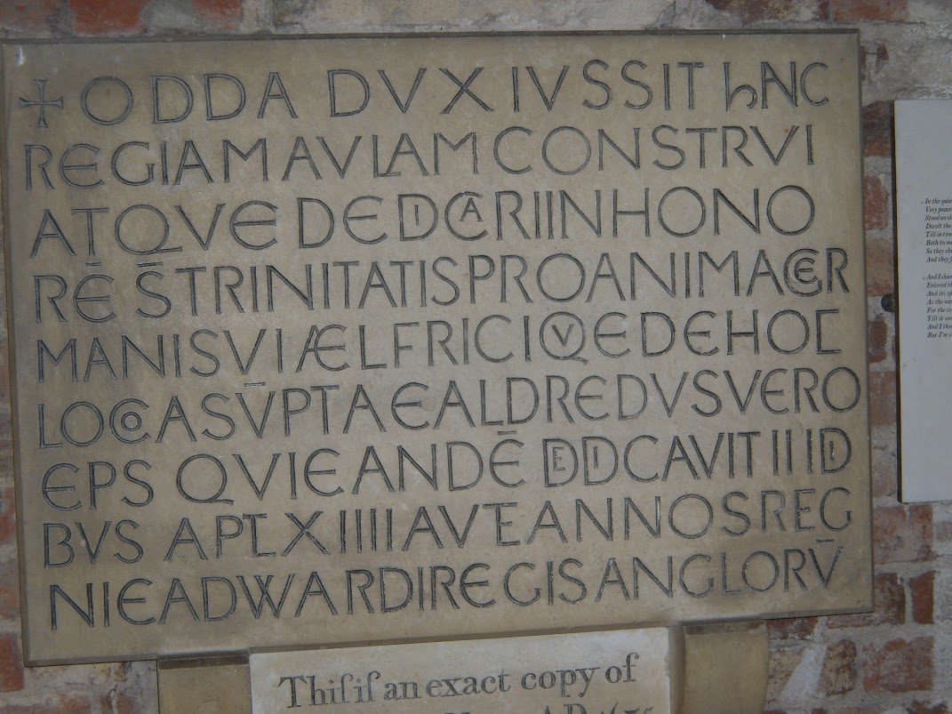 The name of the small village of Deerhurst means “a forest frequented by deer.” It is unique because the eighth-century St. Mary’s Saxon Church and the eleventh-century Odda’s Chapel of the Holy Trinity are located in it. Both constructions once were part of the Deerhurst monastery in the subkingdom of Hwicce. In the seventh century at one time Hwicce was ruled by Enfrith who had a daughter named Eafe. Eafe married the first Christian ruler of Sussex and was baptized; her confessor was the holy Irish missionary Dicul. Widowed, Eafe returned to her native kingdom where she was buried at Deerhurst Church together with her father and uncle who had been converted to Christ as well. It is not known when Deerhurst Monastery was founded but it is certain that it prospered by the eighth century. Its benefactors were Earl Ethelmund and his son Ethelric who were both buried there; the latter generously bestowed lands on Deerhurst, and so it became one of the largest communities in Gloucestershire.