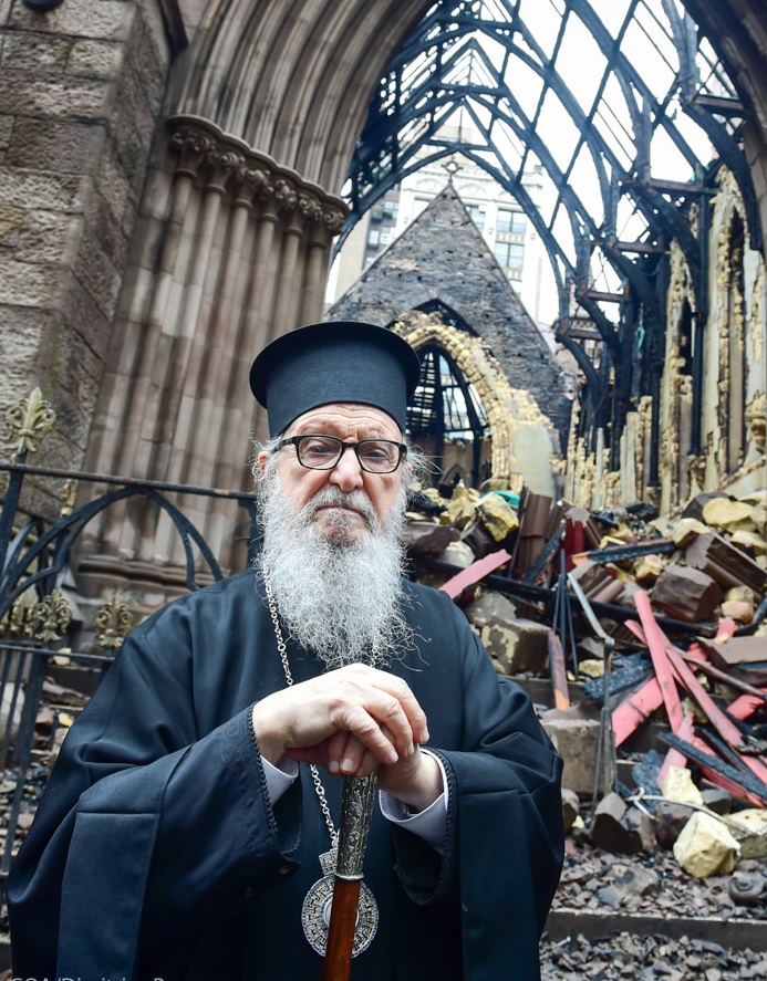 As an expression of the support and concern of the Greek Orthodox Archdiocese, His Eminence Archbishop Demetrios of America visited yesterday afternoon the Serbian Orthodox Cathedral of Saint Sava in lower Manhattan, which was destroyed by a catastrophic fire on the evening of Pascha Sunday, May 1, 2016.