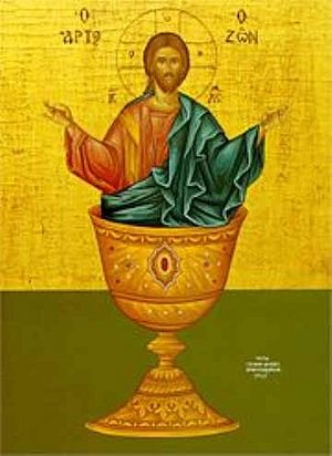 As the Saracen saw these things he became furious with anger and, enraged at the priest, he wanted to kill him. When the time of the Great Entrance approached, the Saracen saw again, and more manifestly, the child cut into four pieces on the tray, his blood in the cup. He became again ecstatic with rage. Towards the end of the Divine Liturgy, as some of the Christians wanted to receive the Holy Communion and as the priest said, “With the fear of God and faith draw near,” all the Christians bent their heads in reverence. Some of them went forward to receive the holy sacrament. Again, for a third time, the Saracen saw that the priest, with a spoon, was offering to the communicants from the body and the blood of the child. The repentant Christians received the holy sacrament. But the Saracen saw that they had received communion from the body and the blood of the child, and at that he became filled with anger and rage against everybody.