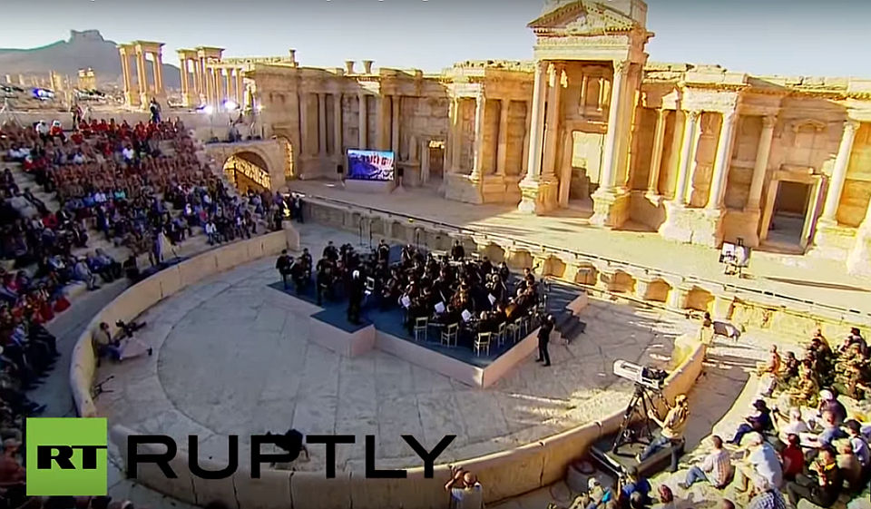 But that was then. ISIS’s 10-month occupation of Palmyra was brought to an end in March when Syrian government forces backed by the Russian military reclaimed it. Now, a very different event has been filmed.