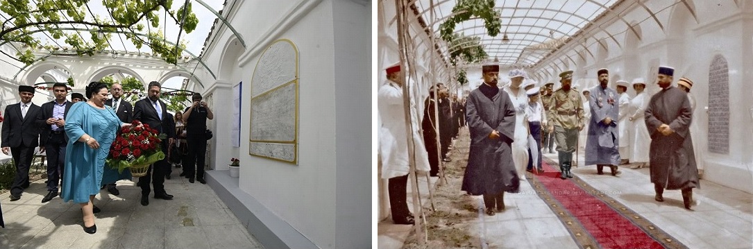 They then visited Evpatorian Kenassas, the temple complex of Crimean Karaites - opened in 1837 - located in Evpatoria. Their Imperial Highnesses unveiled a memorial plaque in memory of the visit by Emperor Nicholas II to the Karaite kenasa on 16 May, 1916.