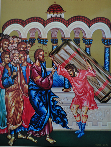 The sick man answered him, “Sir, I have no man to put me into the pool when the water is troubled, and while I am going another steps down before me.” Jesus said to him, “Rise, take up your pallet, and walk.” And at once the man was healed, and he took up his pallet and walked. Now that day was the Sabbath. So the Jews said to the man who was cured, “It is the Sabbath, it is not lawful for you to carry your pallet.” But he answered them, “The man who healed me said to me, ‘Take up your pallet, and walk.'” They asked him, “Who is the man who said to you, ‘Take up your pallet, and walk’?” Now the man who had been healed did not know who it was, for Jesus had withdrawn, as there was a crowd in the place. Afterward, Jesus found him in the temple, and said to him, “See, you are well! Sin no more, that nothing worse befall you.” The man went away and told the Jews that it was Jesus who had healed him (John 5:1-15).