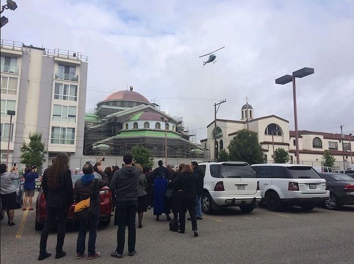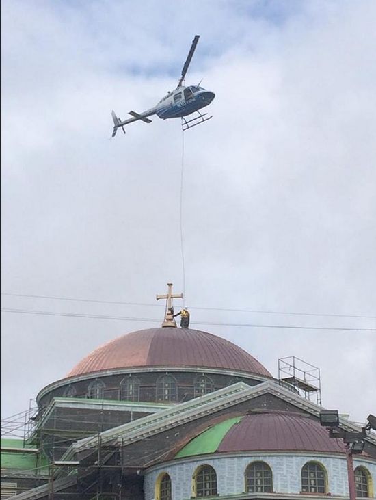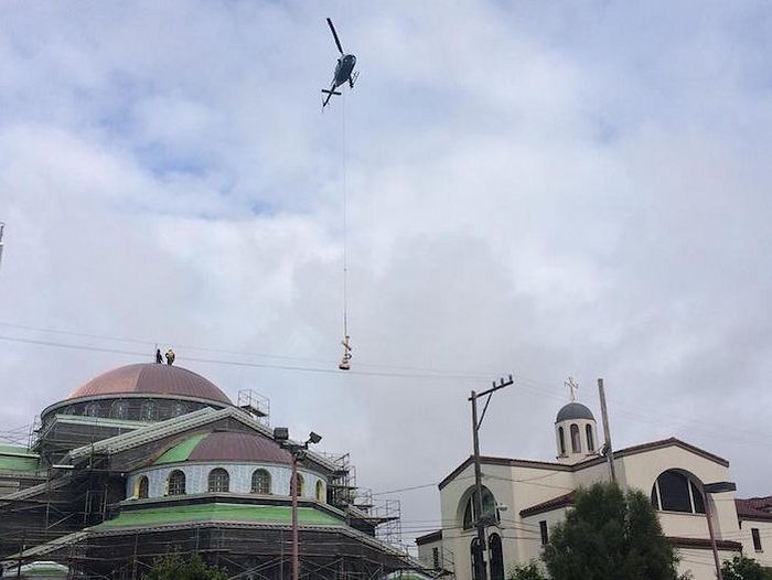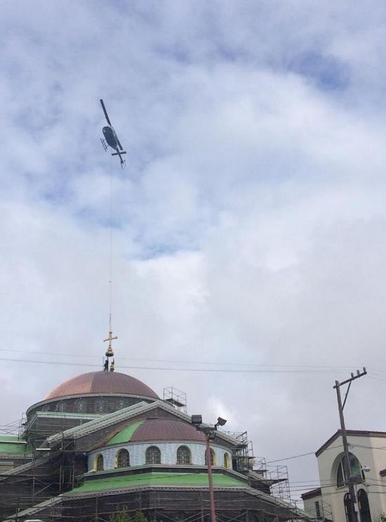 The long and storied history of the Annunciation Cathedral of San Francisco got another chapter written in its books on May 21, 2016 as the cross for its new dome was delivered and installed—via helicopter.