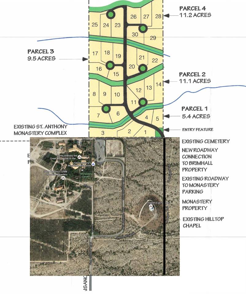 A developer is proposing drastic changes to the zoning and land usage for parcels of land IMMEDIATELY ADJACENT to Saint Anthony's Monastery. These changes would have a dramatic and significant negative impact to Saint Anthony's Greek Orthodox Monastery. It would also be a dramatic negative impact to all the local residents and out-of-state visitors who attend services there, to all the families who have relatives buried in the cemetery, and to everyone who currently enjoys the tranquil and graceful nature of the Monastery.