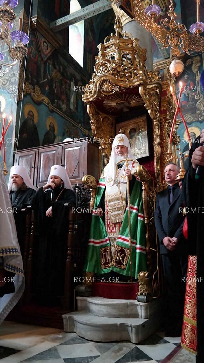 The Patriarch of Moscow and All Russia arrived on Friday to St. Panteleimon Monastery on the holy mountain of Athos, reports a correspondent of AgionOros.ru.
