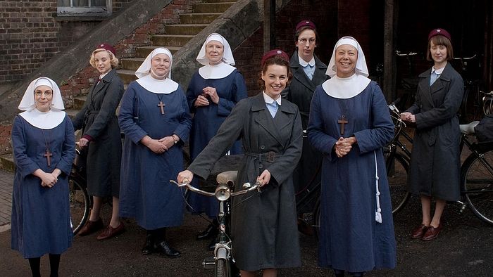 I am a great fan of the BBC series “Call the Midwife”, which features a group of Anglican sisters working among the poor in a London neighbourhood as midwives. Their order is fictional, but is based upon the actual order and London experiences of the Community of St. John the Divine, then working in London and now moved to Birmingham. Being such a fan of the series, I wanted to check out the real community online. Their numbers are fewer now, as the community has been reduced to five elderly women. What interested me was that unlike their BBC counterparts who wore a blue monastic habit, veil and wimple, the sisters today no longer wear a monastic habit, having dispensed with it since the days when they wore it in the 1960s. In this they are no different than other western monastic orders of nuns, including many Roman Catholic nuns, who since the days of Vatican II have also put aside their monastic habits and adopted secular dress.