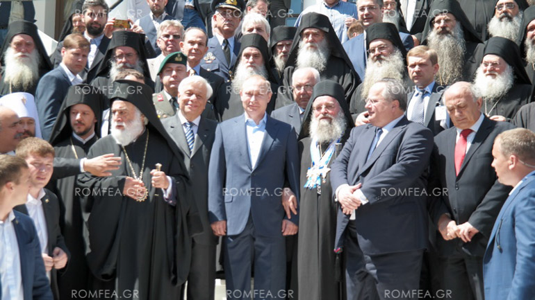 President Putin was received into the hall of the Holy Kinot. Greek president Prokopis Pavlopoulos participated in the reception.