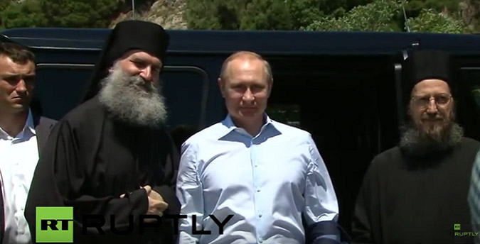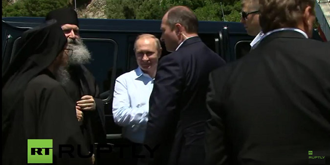 Vladimir Putin, president of the Russian Federation, was met with special honor on Mt. Athos, reports AgionOros.ru.