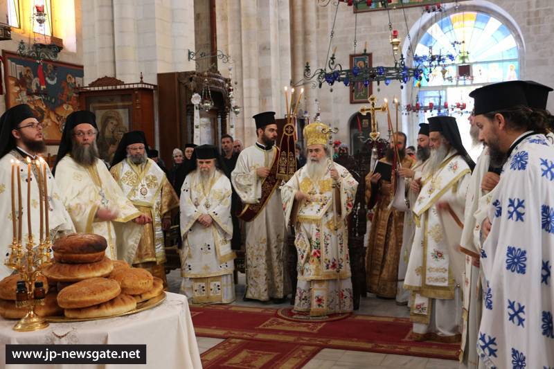 In the church built over the well by Archimandrite Ioustinos, dedicated to St Photini the Samaritan, the Hagiotaphite St Philoumenos suffered a martyr’s death. There, His Beatitude Theophilos served the Divine Liturgy on the day of the feast, having as concelebrants: Archbishops Aristarchos of Constantina, Demetrios of Lydda, and Philoumenos of Pella; Archimandrite Nektarios as leading priest, the hegumen of Raffidia, Archimandrite Leontios, the hegumen in the Village of the Shepherds, priests visiting from Greece, and Arabic-speaking priests from the nearby towns of Nablus. Elder nun Mariam sang in Greek, with hieropsalts in Arabic, in the presence of Consul-General, Mr Vasileios Koinis, and other members of the Greek Consulate. Residents of adjacent towns attended the service, as well as pilgrims from Greece, Russia, Ukraine and Romania.