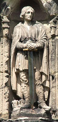 The memory of St. Wistan has lived on in the town of Wigston Magna near Leicester for over 1,000 years in spite of the Reformation. According to tradition, after the saint’s death his holy body was translated from Wistow to Repton, but during the journey the procession stopped overnight in what is now Wigston Magna: suddenly healing miracles began to occur on that spot and a chapel in honor of the saint was erected there. The relics were moved to Repton, but the chapel dedicated to St. Wistan continued to exist in Wigston, attracting many pilgrims. In this chapel there stood a specially venerated statue of St. Wistan, adorned with jewels, which was noted for its healing powers. In the Middle Ages the town of Wigston was commonly known as “Wigston Two Steeples” on the account of the very high spires of its two churches—All Saints’ Church and St. Wistan’s Chapel. During the Reformation the saint’s figure was probably destroyed and the chapel closed. From that time on it was used for various secular purposes and eventually nearly fell into ruin. In 1877 the chapel was re-consecrated and services in it resumed, and in 1957 it was again dedicated to St. Wistan. Now it is used as a parish church and pilgrimages go on.