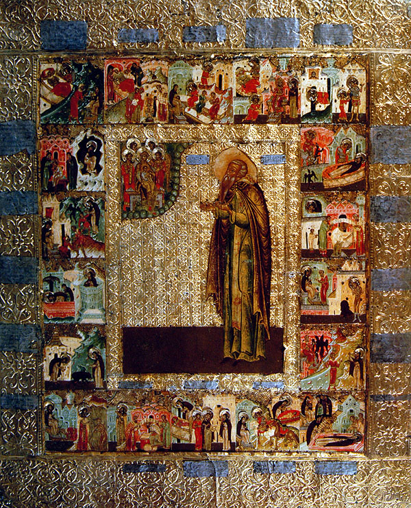 Saint Theodore continued in his harsh labors. At his request a blacksmith made him an iron cage without a roof, and so narrow that it was scarcely possible to stand. In this cage the monk stood in heavy chains from Holy Pascha until the Nativity of Christ. From the Baptism of the Lord until Holy Pascha he secluded himself in his cave, from which he emerged only for church services on Saturdays and Sundays. Throughout the whole of the forty-day Fast the saint ate only greens, and bread on Saturdays and Sundays.