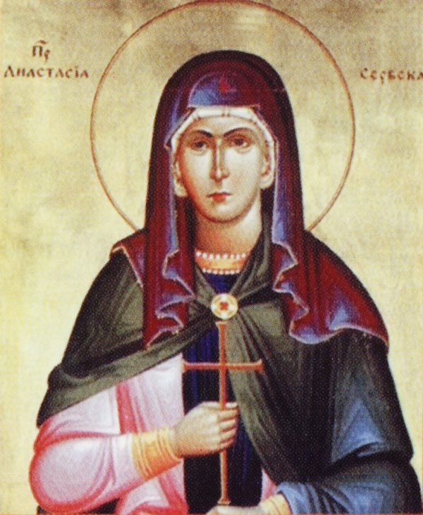 Saint Anastasia was the mother of St Sava of Serbia (January 12). She was the daughter of the Byzantine Emperor Romanus, and received the name Anna when she was baptized. Later, she married the Serbian king Stephen Nemanya (September 24).