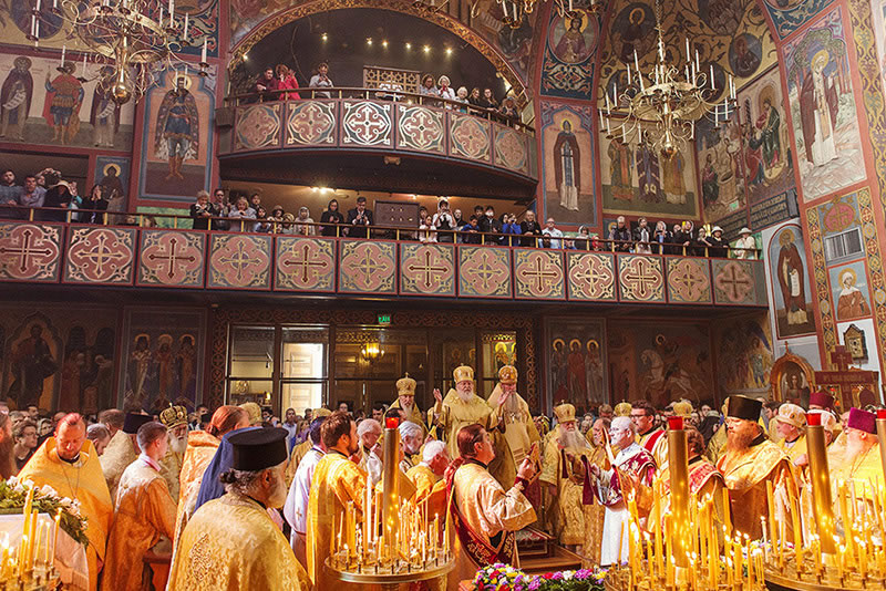 Metropolitan Hilarion was joined in the service by His Eminence Archbishop Mark of Berlin and Germany; His Eminence Archbishop Kyrill of San Francisco and Western America; His Eminence Archbishop Gabriel of Montreal and Canada; His Eminence Archbishop Peter of Chicago and Mid-America; His Grace Bishop Nikolai of Salavat and Kumertau (Bashkortostan Metropoliate of the Moscow Patriarchate), Bishop Theodosius of Seattle, Vicar of the Western American Diocese; His Grace Bishop Nicholas of Manhattan, Deputy Secretary of the Synod of Bishops; His Grace Bishop Paisy of Timoshuransk (Romanian Orthodox Church), and His Grace Bishop Nikolai, formerly of Sitka and Alaska of the Orthodox Church in America, now retired and a member of the episcopate of the Russian Church Abroad.