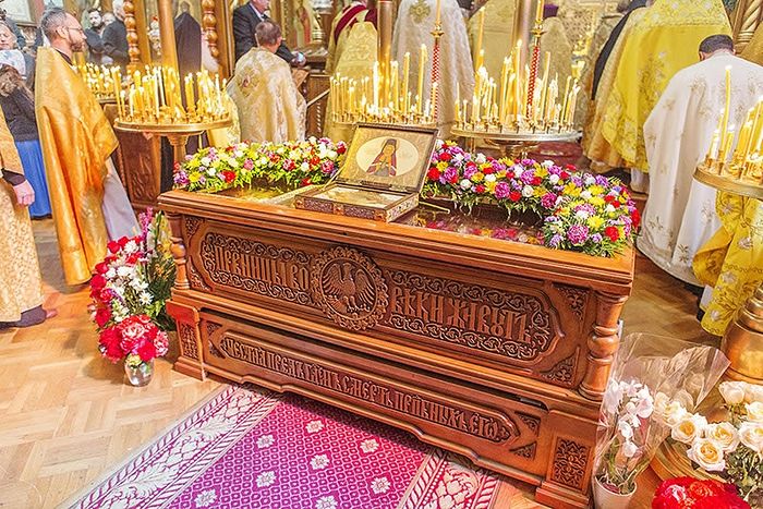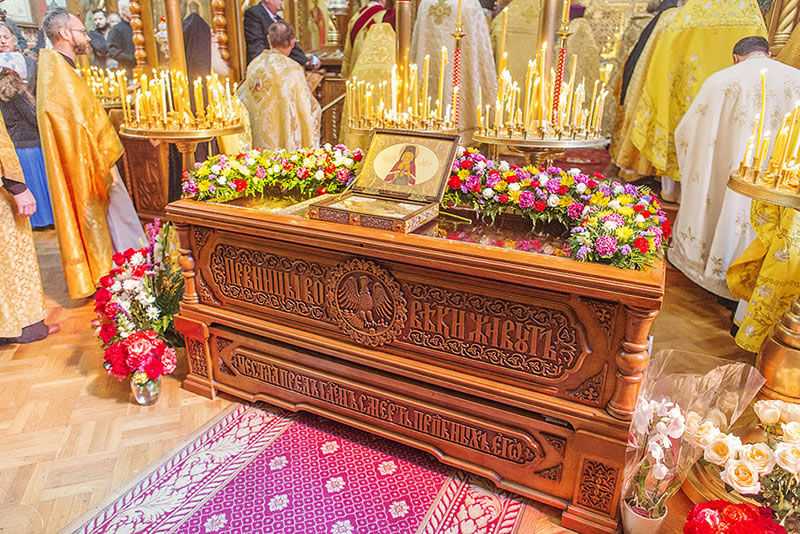 The procession concluded with praises to St John sung before his uncorrupt relics, at the end of which Metropolitan Hilarion read the prayer to him composed by Archbishop Anthony (Medvedev), who succeeded him on the cathedra of Western America, and who initiated the uncovering of the saint’s relics, which were discovered to be uncorrupt.