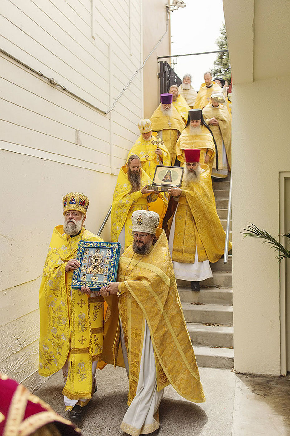 Also serving was Archimandrite Irenei (Steenberg) of St Tikhon of Zadonsk Church in the former orphanage, who holds several offices in the administrations of the Synod and of the Western American Diocese; Mitred Protopriest Victor Potapov, Rector of St John the Baptist Cathedral in Washington, DC; Mitred Protopriest Stefan Pavlenko, Rector of the Church of All Russian Saints in Burlingame, CA; Mitred Protopriest Peter Perekrestov, Senior Priest of the cathedral, as well as clergymen of the various diocese of the Russian Church Abroad, representatives of other Orthodox Churches and other pilgrims in clerical rank.