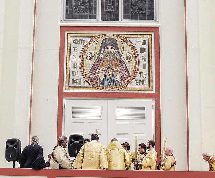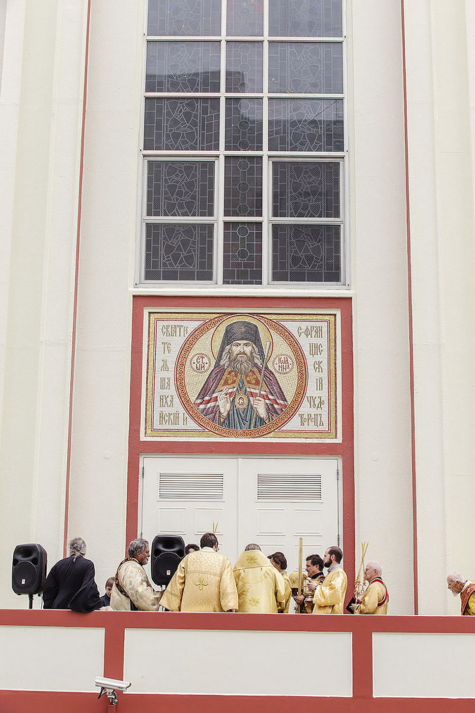 After Divine Liturgy, a Moleben with procession of the cross around the grand cathedral was held during which a new mosaic depicting the great hierarch of the Russian diaspora, St John, was consecrated. The image, created by master mosaic-makers in Moscow, was hung above one of the cathedral’s entrances.