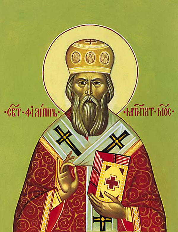 At the place where the relics of St Philip were met in Moscow by clergy and people, a cross was set up, which gave its name to the Cross Tollgate in Moscow (at the Rizhsk rail-station).