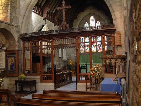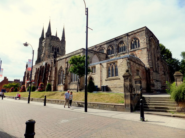 In 1345 during a devastating fire the whole town of Tamworth fell into ruin, and the church of St. Editha was burned down as well. Immediately after that the building of the splendid church that stands here today began. The community of canons, which had been attached to this church before the Reformation, was dissolved in 1548, and the building has been used as a parish church since then. Among its treasures—numerous historic stained glass windows (depicting, among others, St. Edith) and an old eighteenth-century organ.