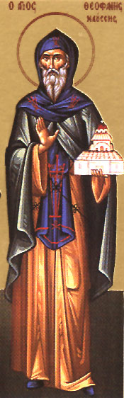 When the monastery flourished, the saint withdrew to a new place at Naousa, where he made a church in honor of the holy Archangels and founded there also a monastery. To the very end of his days St Theophanes did not forsake guiding the monks of both monasteries, both regarding him as their common father.