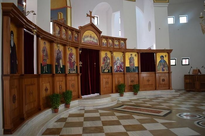 The land was purchased in 2004 and the work for drafting projects began right after by the architecture professor Mr. Papas, not to mention all the procedure which had to be followed for issuing the necessary licenses for the use of the building land. The work started in 2009 and the most important phase of construction ended in 2011. Along with the church, also the modern school building was built which was put into use in 2012. In addition, the bell tower was built in compliance with the traditional architecture style of the area, as well as a porch facility for the faithful, an outside proskinitar, and an arranged church yard which makes up a wonderful park surrounding the church and the school.