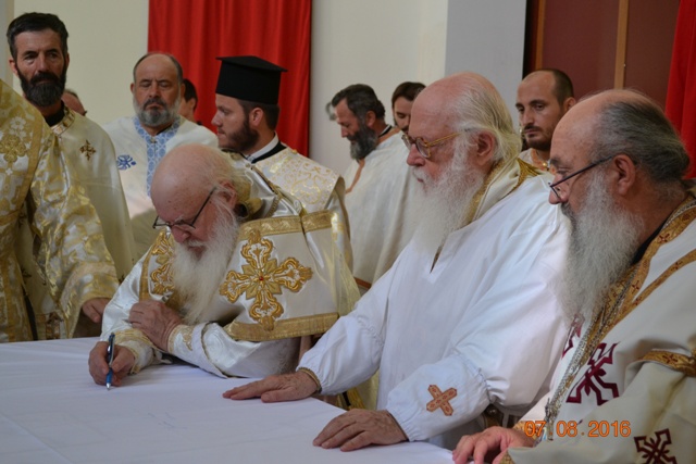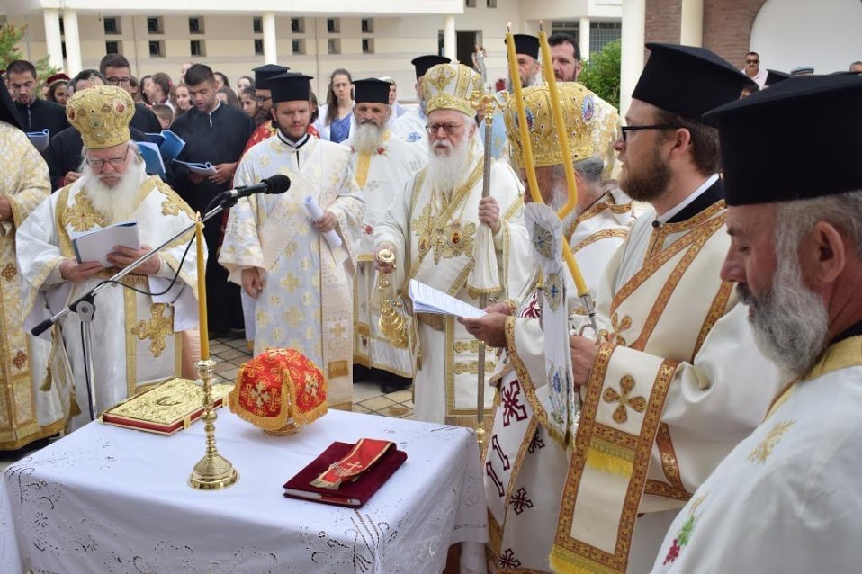 The beautiful service of consecration of the new Resurrection of Christ Cathedral in Gjirokastra took place on Sunday, August 7, 2016 according to the specific Church order (tipikon). The consecration service, as well as the Divine Liturgy that followed were celebrated by His Beatitude Anastasios, Archbishop of Tirana, Durres and All Albania, His Grace Dimitrios, Bishop and Metropolitan of the Metropolis of Gjirokastra, and His Grace Nathaniel, Metropolitan of Amantias.