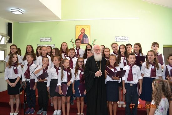 After the Divine Liturgy, the pupils of the Spirit of Love 9-year-school (located on modern premises next to the Cathedral) despite the fact that they were on a school break, organized a festive program which they presented to the Archbishop and the other clergy in order to express their gratitude for everything the Archbishop has done for the Orthodox flock and the future of it. The Archbishop greeted again the participants, addressing mainly the youth this time, and advised them to continue their spiritual efforts. He recalled at this point a significant event in his personal life journey which had occurred on the same day years ago, more precisely on August 7, 1958, when the Archbishop was ordained a deacon.